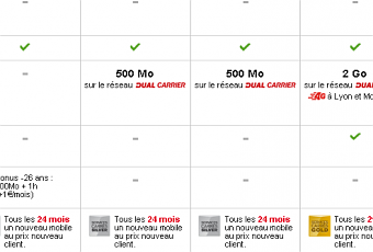 Tout les forfaits ont accès au dual carrier et à une baisse de prix de 5€ pour le carré 2h et 10€ pour les autres ce qui combiné à une offre eco et un multipack peut s’avérer intéressant.