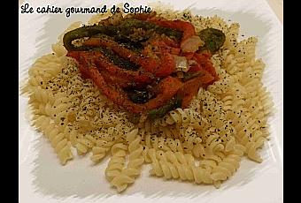 Ayant tout à coup un gros stock de poivrons dans mon frigo, ce plat de pâtes repéré chez DDcuisine m'a permis d'écouler mon stock, et de me régaler !
