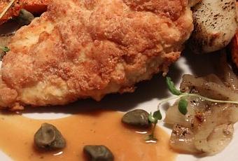 4)Retirer du feu. Ajouter une pincée de sel, du persil, le reste du beurre et les câpres. Napper le poulet de sauce et servir aussitôt.