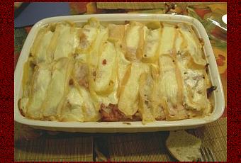 - Couper le Reblochon en lanières de 0.5 cm et les aligner sur le plat à gratin