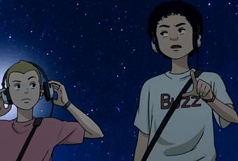 Il y font leur promesse de partir un jour dans l’espace. Cette nuit là, il y rencontre aussi une fille avec qui ils partageront une promesse…