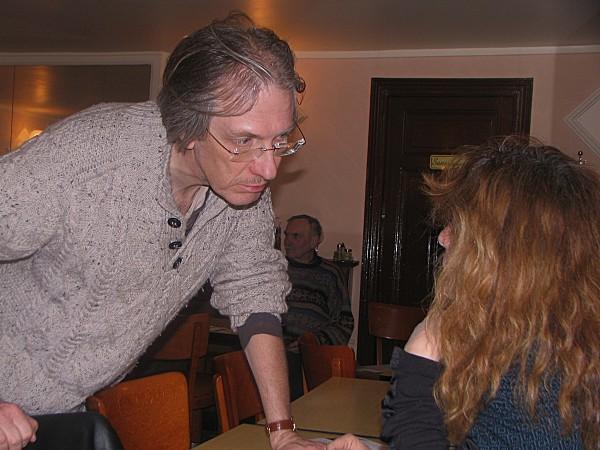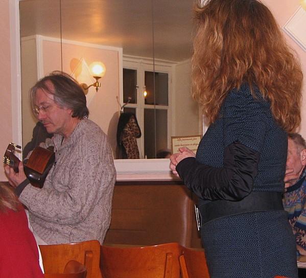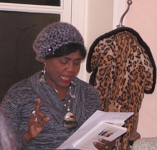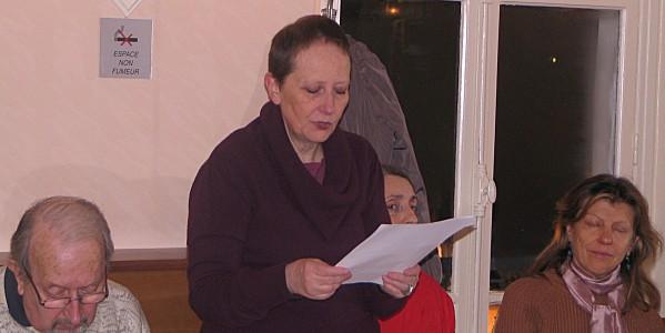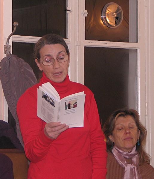 ORSZULAK lit un de ses poèmes; au fond, à droite, Victoria THERAME.