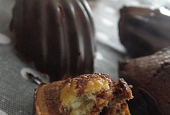 Démoulez vos madeleines. Faire fondre au micro-ondes le chocolat pendant 2mn à 350W. A l 'aide d'un pinceau, verser un peu de chocolat fondu dans chaque empreinte et tapisser celles ci de chocolat, déposer vos madeleines par dessus et déposer la plaque à madeleines au frigo pour 30mn