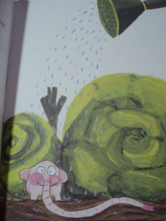 © Ramona BADESCU et Benjamin CHAUD/ Albin Michel jeunesseAu cours de ces 6 histoires, comme dans toute la collection, les situations de Pomelo dans le potager sont comme des anecdotes d'enfants, assez surréalistes aussi et toujours décalées. Pomelo est le lien, l'ami, le bout en train, le poète et le philosophe. Ce sont des moments de vie, de bonheur. Même si Pomelo est en mauvaise passe, la bonne humeur revient.Le texte de Ramona BADESCU est court mais plein de finesse. A chaque double page, c'est un questionnement qui peut paraître anodin mais renvoie à d'autres interrogations du jeune lecteur. Toutes les histoires permettent une ouverture sur d'autres possibles, sur une autre réalité.La collection est un succès, aussi parce que les dessins de Benjamin CHAUD apportent une vraie plus-value, pas seulement miroir du texte mais bien une lecture à part entière, un contrepoint. Les illustrations de ce petit éléphant rose et de ses amis sont magnifiques. Mais plus encore, elles sont décalées par rapport au texte en amenant l'aspect comique ou perplexe du héros. Les tiges agrippent les pieds, queue de Pomelo, la trompe est souvent dans une situation coimplexe ou les questionnements très philosophiques amènent des dessins cubistes, des labyrinthes, des déformations.Le tout est un régal pour rêver, se questionner doucement, amener la distanciation et trouver la part belle des choses.
