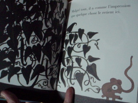 © Ramona BADESCU et Benjamin CHAUD/ Albin Michel jeunesseDans "Pomelo s'en va de l'autre côté du jardin", le petit éléphant a comme une mélancolie, tout est différent, il se sent mis de côté et décide de partir, découvre ainsi le potager la nuit et après le potager, un autre jardin complètement différent tout en lui étant presque familier.