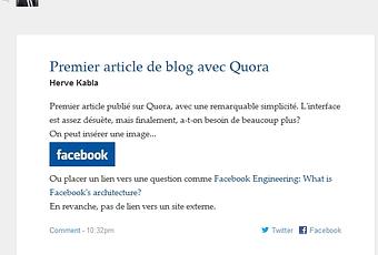 Chaque article peut être partagé sur Facebook, Twitter, LinkedIn … ou sur un autre blog Quora.