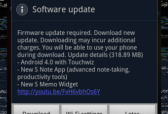 Pour l'instant il semble qu'elle soit déjà disponible aux Pays-Bas ainsi qu'en Allemagne et cela semble se propager au fur et à mesure en Europe... mais bon pour le moment rien en France ni même en Grande Bretagne (snif) ! Alors bien sur, deux modes pour la mise à jour de votre firmware : soit en mode OTA (Over The Air) soit via Kiès depuis votre PC, pour les possesseurs d'un téléphone "nu". Il est clair que tout le monde ne l'aura pas en même temps, mais si on se réfère à la tablette Iconia Tab A500 il a fallu attendre quand même 3 semaine pour la totalité des appareils en circulation.Edit : il semble que la propagation soit effective en ce moment même sur la Martinique pour certains possesseurs du Galaxy Note !