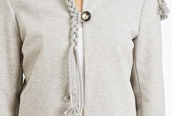 La coupe minimaliste est accentuée par un fin point de surjet et d’un unique bouton de fermeture façon corne. De sophistiqués cordages en coton, tressés à la main par une de nos couturières de La Cabana de Alta Costura Misericordia, adoucissent les lignes symétriques. On notera les finitions réalisées en fils argentés qui en font un modèle définitivement anti-conformiste.