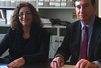 Madame Diane Ouellet, directrice générale de la Société de gestion de la BTLF et Monsieur Philippe Beauvillard, directeur général d’Electre, lors de la signature de l’entente.