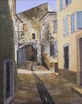 Ecoutez le décrire son travail : “ L’oeuvre que je vous présente maintenant, je l’ai réalisée en partie sur le motif, puis terminée d’après photo en 2005. C’est une rue d’Ampus, la rue Clumanc. Le passage , c’est la Porte Sarrasine. Le travail des vieux murs a été réalisé au couteau. Le fort contraste de l’ombre de la rue et de la traverse lumineuse venant de la droite donne beaucoup de chaleur à cette oeuvre pourtant en partie à l’ombre.”