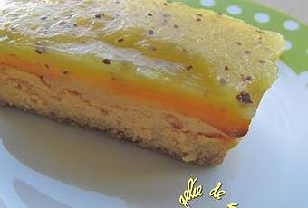 Curieux mélange pour ce cheesecake sucré où l'on mélange de la courge butternut avec du kiwi, du citron vert et du combava. J'ai trouvé cette recette originale sur le blog La Francesa aux fourneaux. J'ai divisé par deux la quantité de biscuits pour avoir une croûte biscuité plus fine et j'ai au contraire augmenté la quantité de gelée au kiwi pour napper généreusement toute le gâteau. Plutôt que du kiwi vert, j'ai utilisé du kiwi jaune (ou Kiwi Gold). La couleur tranche moins, mais je préfère sa chair plus sucré et son parfum de miel. Le tout était un très bon mélange, surprenant mais agréable.