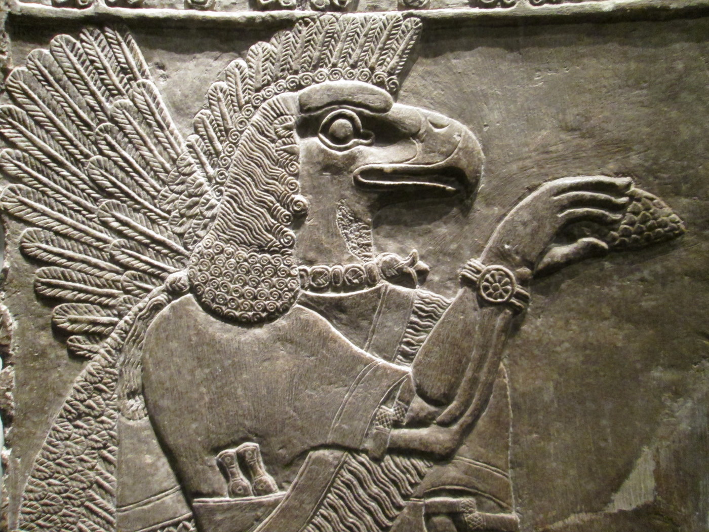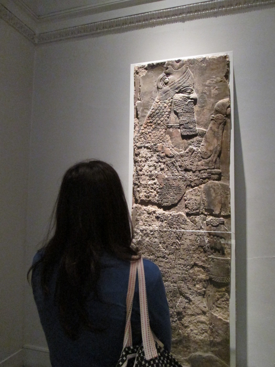 Parmi les nombreuses pièces du musée, les bas reliefs en plaques murales sont absolument spectaculaires. Représentations d'esprits protecteurs (comme c'est le cas ici) sous des formes d'humains à têtes d'animaux, scènes de palais ou description de conquêtes, scènes guerrières, les panneaux antiques nous racontent la vie et l'histoire de cet empire...