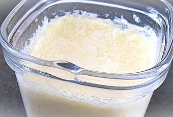 Verser le lait chaud sur la préparation oeufs/ananas.