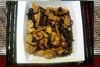 poulet au champignons noirs, gingembre frais, sauce huitres, sauce de poisson, huile de sésame, cuisine asiatique