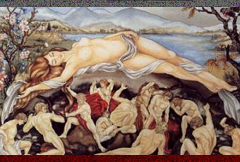 Apparut ensuite un troisième protagoniste immatériel, plutôt une énergie, Eros, l’amour, grâce à l’influence duquel Gaia put engendrer toute seule un dieu gigantesque, Ouranos, le ciel.