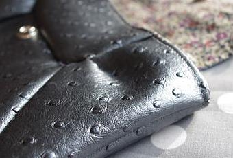 Une pochette en simili cuir argent et intérieur en Liberty Eloise.