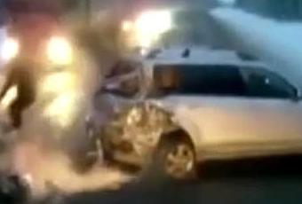Une petite fille de deux ans a frôlé la mort à deux reprises en quelques secondes. Alors que la voiture dans laquelle elle se trouvait percute un camion, elle est éjectée de l'habitacle et finit sur la route où un deuxième camion parvient à l'éviter de justesse à quelques centimètres près.