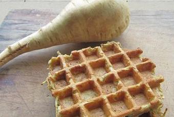 Le panais est un légume que j'aime bien mais que j'ai encore du mal à doser en cuisine : son goût marqué, légèrement sucré, est trop fort cuisiné seul (à mon goût) et ne s'associe pas forcément avec n'importe que légume. Ici, en gaufre, avec des pommes de terre, c'est tout simplement un délice. Les légumes sont simplement râpés crus et mélangés à la pâte, ils cuisent très bien dans le gaufrier, jusqu'à devenir fondants, à tel point qu'on ne le sent plus sous la dent. Une parfaite recette pour cacher quelques légumes.