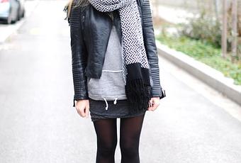 Perfecto & Sweat Zara / Jupe American Vintage / Écharpe & Collant H&M / Baskets New Balance
