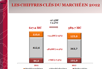 Le SNEP (Syndicat national de l'édition phonographique, principal syndicat de producteurs de disques) vient de publier les chiffres du marché de la musique enregistrée 2012. Des chiffres qui confirment que le marché français n'a pas encore trouvé son équilibre, David El Sayegh, directeur général du Snep, allant jusqu'à parler à la conférence de presse annuel de l'organisme de « mauvaise année. ». En effet, le marché s'inscrit à nouveau en baisse, de 4,4%, après une baisse du même ordre en 2011 [1].