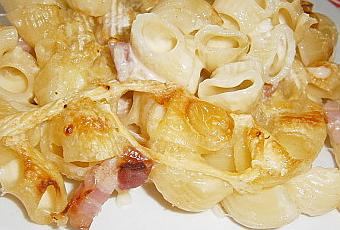 tartiflette aux pâtes, cuisine montagnarde, lardons, vin blanc sec, crème, piment d'espelette, cuisine savoyarde