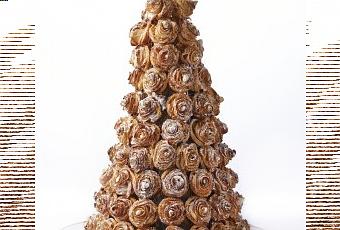 C’est une tarte bouquet de roses, un croque en bouche tout en hauteur pour la Saint-Valentin absolument irrésistible.