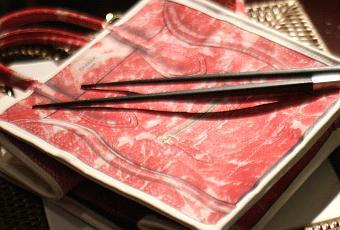 J’ai accepté de recevoir un sac de la nouvelle collection, par curiosité, et si je m’attendais à un coloris original, j’ai découvert avec stupéfaction un sac motif « viande » (oui, oui).