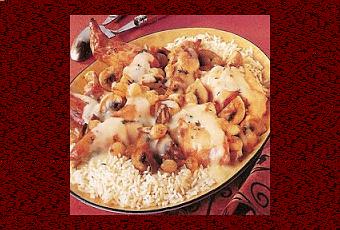 - Laver les champignons et les couper 4 ; les ajouter au lapin 5 à 10 mn avant la fin de la cuisson. Égoutter lapin et champignons. Filtrer le jus de cuisson. Réserver au chaud lapin, champignons et oignons.