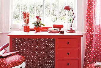 Un total look rouge à pois blancs.