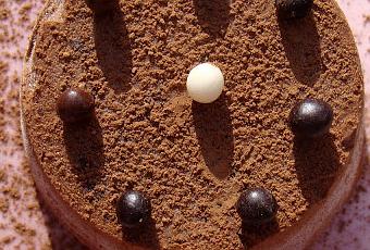 Mélanger vigoureusement les jaunes d’oeufs avec le chocolat fondu. Y ajouter les amandes caramélisées, puis délicatement la chantilly et les blancs en neige.