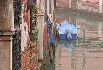 En traversant le Ponte Erizzo la brume se fait plus légère et les alentours du Campo S'Martino et du rio de la Ca' di Dio se laissent découvrir plus nettement. La jolie grille au fond de la Calle del Piovan attire le regard, je m'approche, le linge pend depuis les hauteurs et cache la vue .... continuons notre promenade plus loin, tout s'éclaircit, peut-être sortirons nous de cet épais brouillard ?