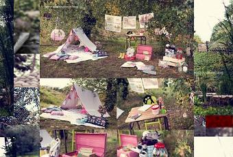 Un petit air d’école avec un vieux bureau d’écolier, d’anciennes cartes de sciences naturelles et de scènes de vie scolaire, une malle emplie de livres, de quoi dessiner, des bonbons colorés mais aussi une petite tente bohème improvisée pour la sieste ! Un décor imaginé avec la maman de Lou qui a réuni toutes ces jolies choses…