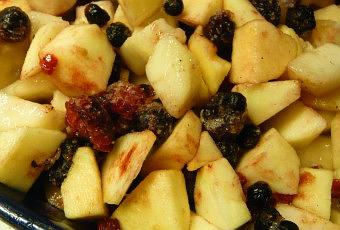 J'ai eu envie d'un crumble car je n'en avais pas fait depuis longtemps. J'avais des pommes, des poires et pour un peu de couleur et d'acidité j'ai ajouté quelques fruits rouges surgelés.