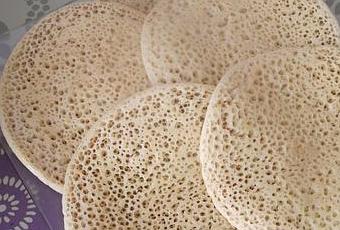 1 cuillère à café de sel Préparation Beghrir (crêpes marocaines aux mille trous) 1Tamiser les ingrédients secs, puis ajouter les deux levures, enfin l'eau tiède, mélanger au fouet puis verser dans le mixeur, bien mixer et laisser lever pendant 10 minutes. Passé le temps de pause, une mousse se forme à la surface, bien mélanger avec une louche en soulevant le mélange.