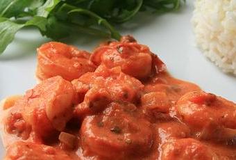 6) Remettre les scampis dans la sauce, ajouter la crème fraîche et laisser mijoter à nouveau 5 minutes sur feu doux. Servir sans attendre ! ;-)