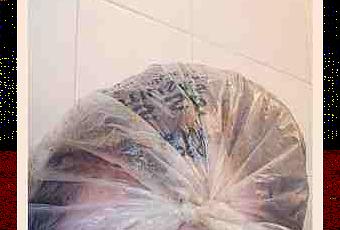 - et un rouleau de cellophane. Ce qui m’a fait terriblement défaut, putain de minot. J’ai donc improvisé avec un sac plastique, adieu glamour …