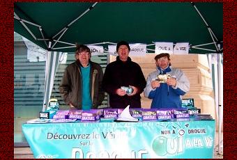 Toulouse : Depuis plus de 20 ans les bénévoles de l’association « Non à la drogue, oui à la vie alertent les jeunes comme les adultes des dangers de consommer des drogues, en particulier le cannabis, drogue vicieuse s’il en est, en distribuant gratuitement des brochures d’information. Ils avaient installé ce samedi 2 février 2013 sue la Place Jeanne d’Arc leur stand de prévention.