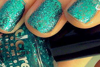 Ce vernis est un joli vert (le 831), tout en paillettes et tout en brillance, avec une sacrée tenue, le seul, d'ailleurs, à s'en sortir après une dure journée de travail.