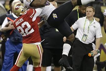 -Bon, les Ravens commencent avec le ballon et Jacoby Jones ramène le botté d'envoi pour le TD. Calvaire, la game prend le bord. 28-6 Ravens. Un retour de 109 v.