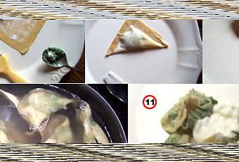 9 - On peut également refermer les coins en petits paquets, comme le font les Chinois. Dans tous les cas pressez bien de façon à ce que la pâte colle bien.