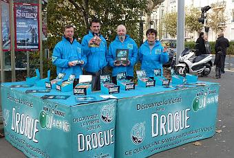Donc Dimanche matin, le stand Non à la Drogue était présent Place des Salins à Clermont-Ferrand où les bénévoles ont distribué environ 400 livrets "la vérité sur la drogue", "la vérité sur l'alcool", "la vérité sur le cannabis" et autres.