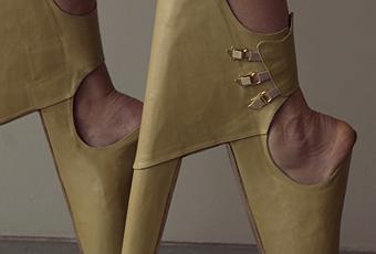L'artiste Leanie van der Vyver, en collaboration avec le créateur de chaussures hollandais René van den Berg, a créé le modèle "Scary Beautiful", une paire de chaussures en cuir aux talons vertigineux et où celui-ci n'est pas situé à l'arrière mais sur le devant de la chaussure.