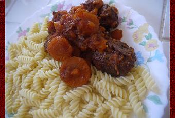 Preparation : Faire revenir les oignons et les gousses d'ail émincés dans un filet d'huile dans une cocotte, Ajouter la viande, laisser dorer de tous les cotés, Puis ajouter le bouillon, le concentre de tomates, les carottes taillées en dés, sel, poivre, bouquet garni, Laisser mijoter 2h à feu doux !! servir avec des pâtes ou des pommes de terre vapeur!!