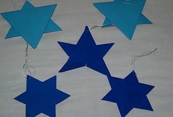 et le "photophore étoilé" recyclage d'une ancienne guirlande électrique, un pot en verre, des petites étoiles argentées collées sur les parois, des étoiles (non visibles sur la photos) faites avec de la peinture phosphorescente, le couvercle est collé fortement et les pieds sont quatre perles en bois vertes.