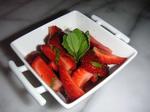 Vous coupez vos fraises en morceaux, jusque là normal, et... Un peu d'huile d'olive vanillée et du sirop de poivre de penja. Avec ça quelques feuilles de menthe ciselée, on mélange le tout et le tour est joué!