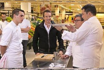 1ère épreuve : Le premier groupe va devoir cuisiner dans une grande surface. Les candidats devront réaliser un plat gastronomique à partir d’un produit imposé que l’on trouve dans les rayons des hypermarchés : boîte de maïs, saucisses Knack, thon en boîte, Vache qui rit, etc. Les candidats devront faire des assiettes spectaculaires pour séduire le jury, car à l’issue de cette épreuve, l’un d’entre eux sera définitivement éliminé du concours.