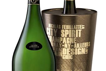 Pour les fêtes de fin d’année, la Maison de Champagne Nicolas Feuillatte propose 3 éditions limitées, sur le thème du City Spirit (cf. mon billet du 22 mars 2012).La Cuvée Spéciale millésimée 2005 est accompagnée d’un rafraîchissoir en métal brossé, rectiligne et sans anses.