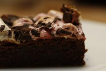 Rocky road browniesIngredients1/2 cup (1 stick) unsalted butter, cut into pieces, plus more for pan1 bag (12 ounces) semisweet chocolate chips1/2 cup granulated sugar1/2 cup packed light-brown sugar1/2 teaspoon salt2 large eggs3/4 cup all-purpose flour, (spooned and leveled)1 cup miniature marshmallows1/2 cup chopped nuts, such as cashews, pecans, or walnutsMethod:Preheat oven to 350 degrees. Butter an 8-inch-square baking pan.Line bottom with parchment paper, leaving an overhang on two sidesButter paper.Melt the butter and 1 cup chocolate chips. Stir in sugars and salt, then eggs, and finally flour and nuts, stirring just until combined. Spread batter evenly in prepared pan. Bake until a toothpick inserted in center comes out with moist crumbs attached, 30 to 35 minutes.Remove from oven, and sprinkle with remaining chocolate chips and marshmallows. Bake until chocolate is shiny and marshmallows are puffed, about 5 minutes. Cool completely in pan. Using paper overhang, lift cake onto a work surface and cut into 16 squares.