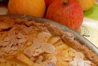 - Enfourner dans un four chaud(180°)pendant 25mn, puis, sortir la tarte et parsemez la avec les amandes effilées et remettez au four 20mn, la pâte doit être bien brune et le dessus de la tarte doré.