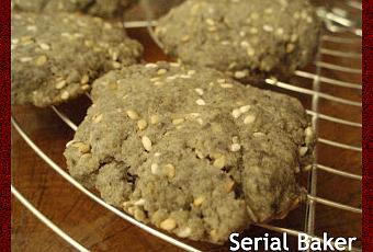 Mélanger farines, sucre et graines de sésame. Ajouter l’oeuf, la pâte de sésame noir et l’huile de sésame. Mélanger du bout des doigts pour obtenir une pâte de consistance sablée. Former une boule et réserver au réfrigérateur pendant une heure.Former des biscuits avec les mains. Cuire au four (th6/180°C) environ 15 minutes, puis laisser refroidir sur une grille.